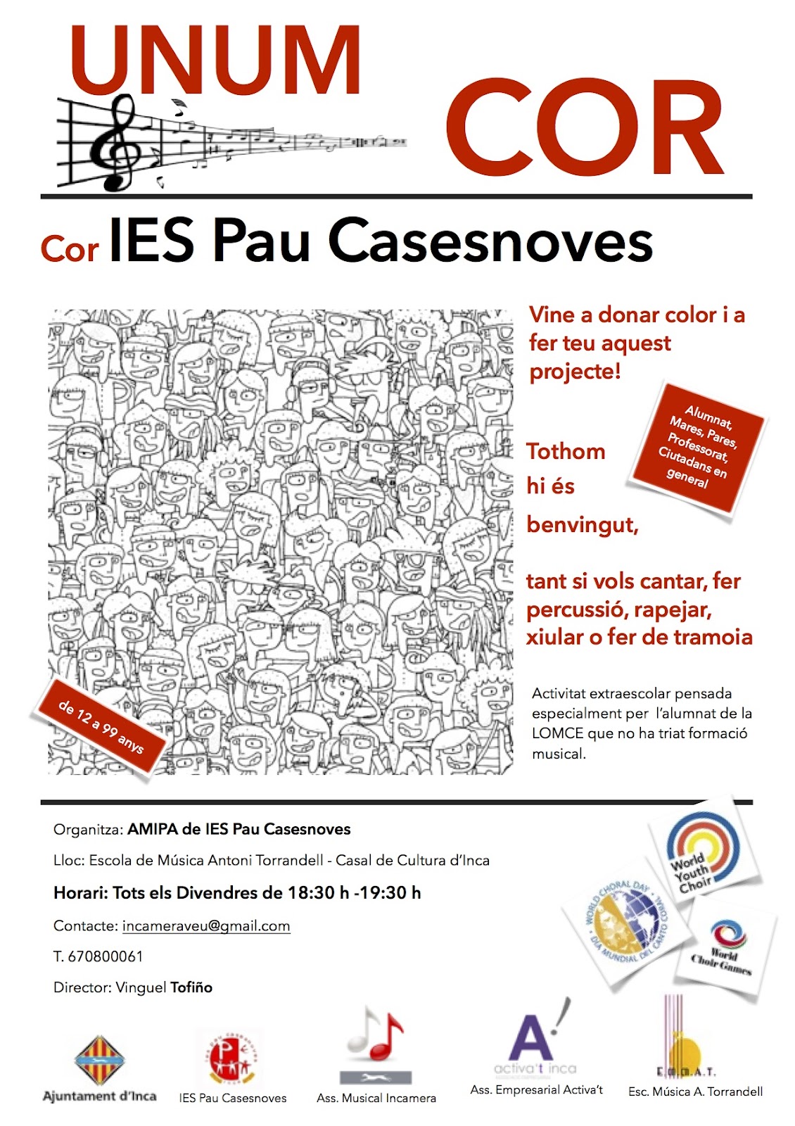 Recorda que tots els divendres està en marxa el Projecte Unum Cor al IES Pau Casesnoves