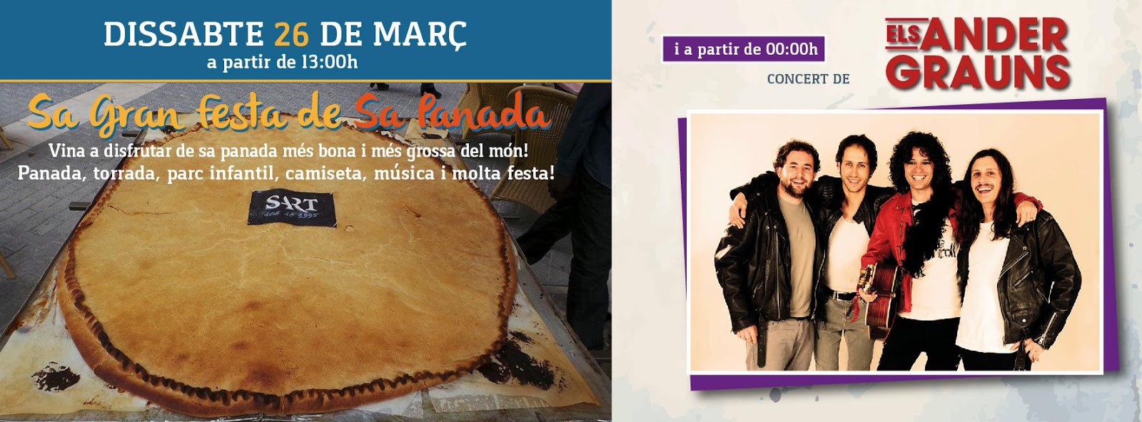 Dissabte 26 de març tindrem torrada, castell inflable pels menuts, SA PANADA MÉS GRAN DEL MÓN, xaranga, rialles, bona gent... I a les 24:00 els nostres amics Els Ander Grauns per acabar la festa amb les millors versions del #pop i #rock.